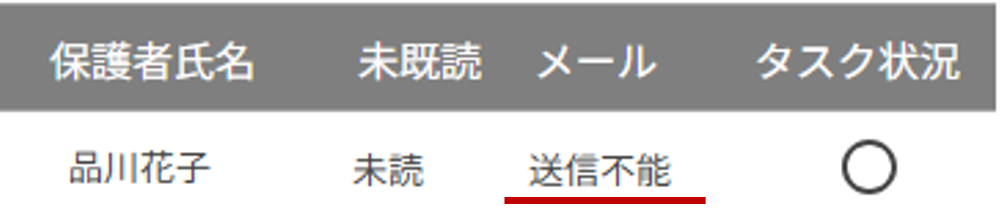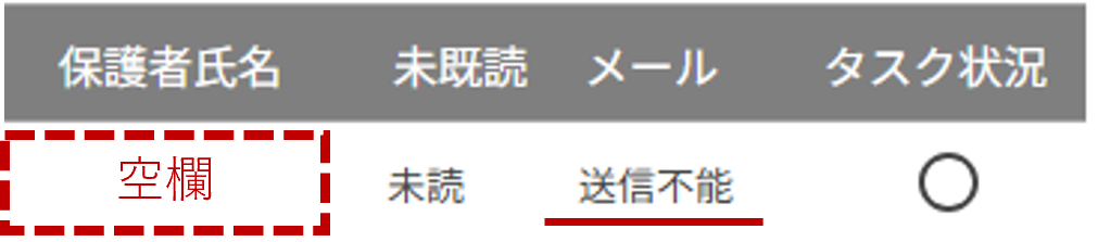 ■保護者氏名が空欄の状態でメール「送信不能」の場合