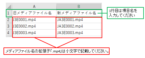 以下の添付ファイルを利用し、2行目以降から入力します。1行目の項目名は変更しないでください。