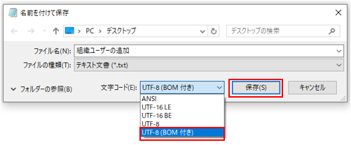2024.10.17 【管理者用】CSVファイルの保存方法 87view 未分類 お気に入り ■Excel2016以降の場合 Excelの「ファイル」>「名前を付けて保存」から、ファイルの種類「CSV UTF-8(コンマ区切り)」を選択し、保存してください。 ■Excel2013以前の場合 Excelの「ファイル」>「名前を付けて保存」から、CSV(コンマ区切り)を選択し、保存します。 保存したファイルをメモ帳等のテキストエディタで開き、「ファイル」>「名前を付けて保存」から、文字コード「UTF-8(BOM付き)」を選択し、再度保存してください。 一覧に戻る 関連記事 CSVファイルの保存方法 2022.04.06 「チャットでお問合せ」から問い合わせをしたが、カスタマーサポートセンターから返事が来ない 2025.05.02