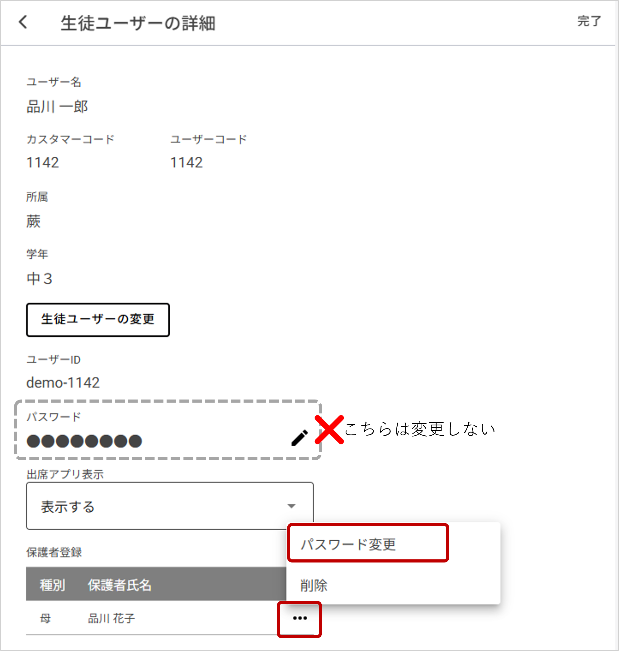 - 保護者のパスワードを変更