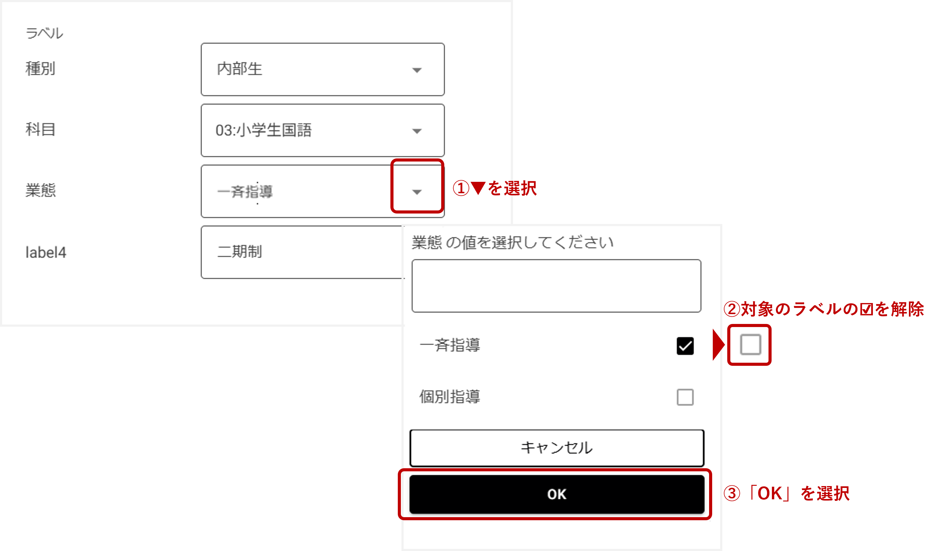 - 生徒ユーザーから割り当てられた対象ラベルを削除する