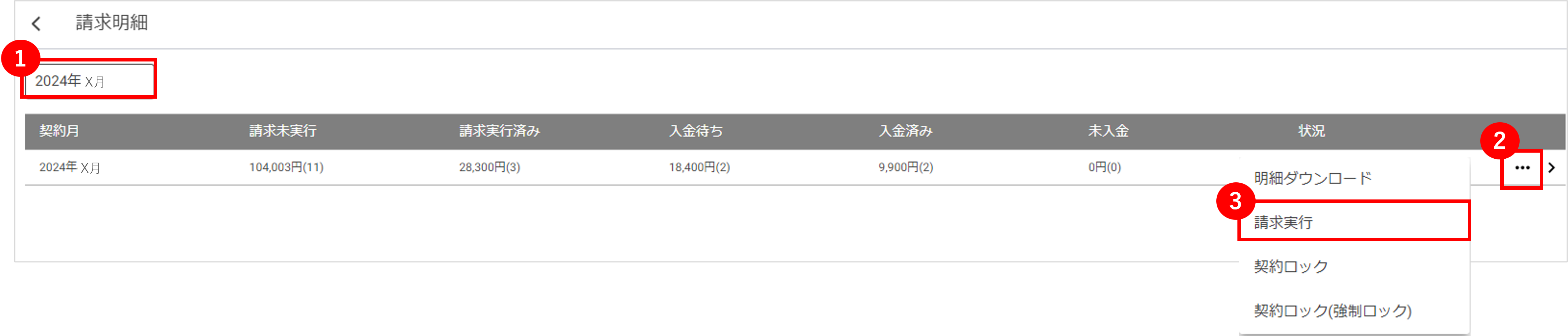 実行後は「請求実行明細」から請求実行状況を確認できます。
