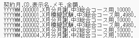 ①作成したCSVファイルをメモ帳等のテキストエディタで開く